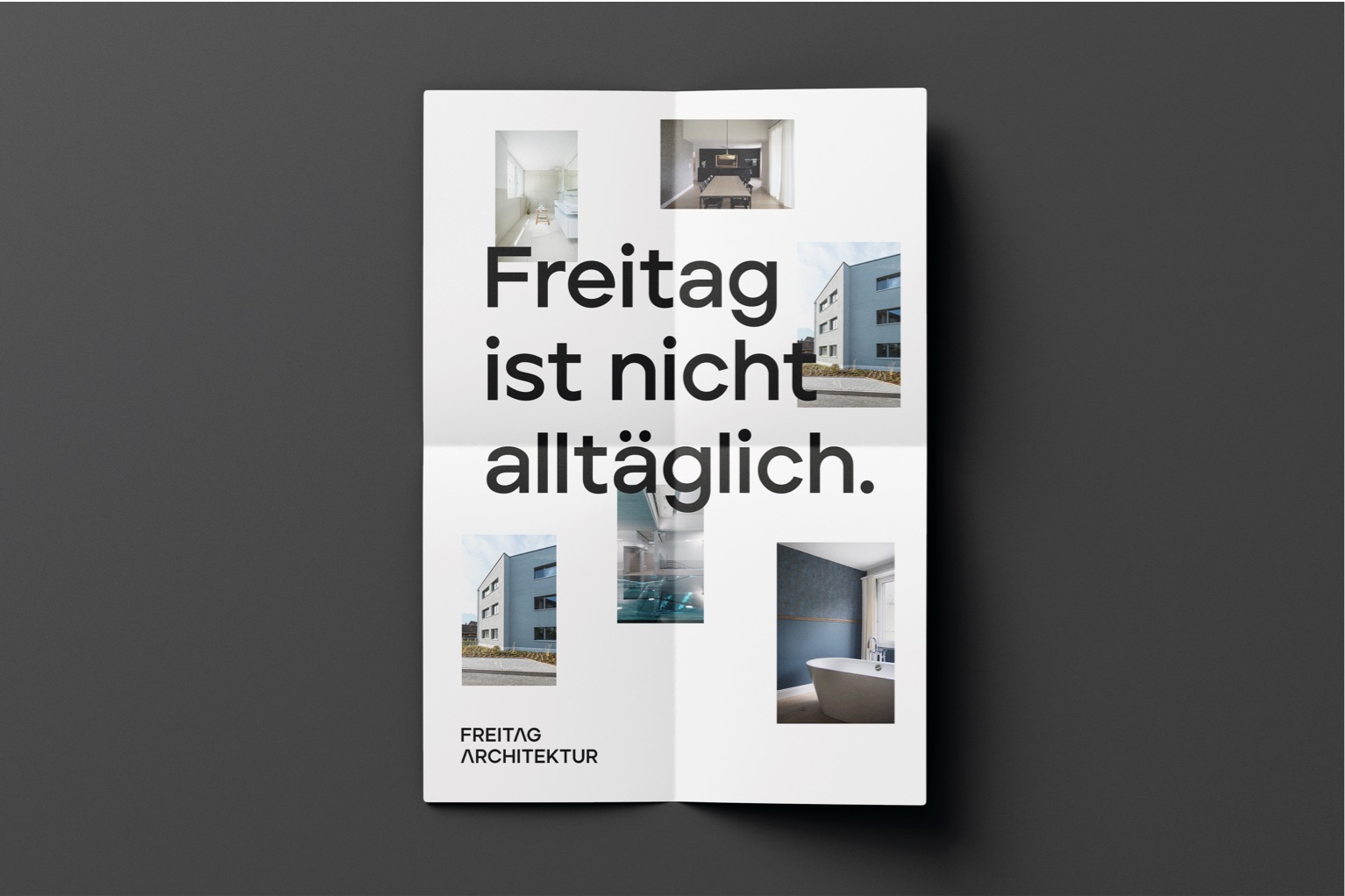 Die Wortmarke «Freitag Architektur» kann negativ oder positiv angewendet werden. Der Hintergrund ist so zu wählen, dass der Kontrast zum Logo genügend stark ist.